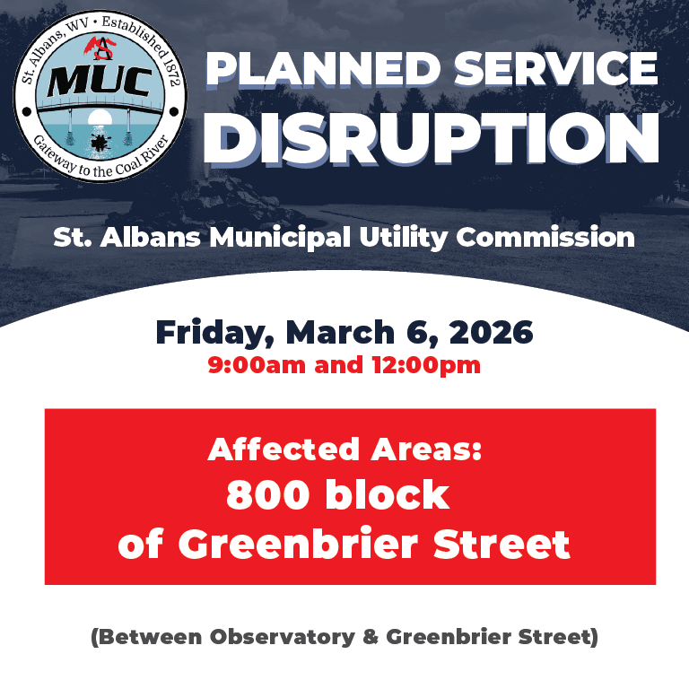 A scheduled water service disruption will take place Friday, March 6, 2026, from 9:00 a.m. to 12:00 p.m. for water line work related to the new Cit...